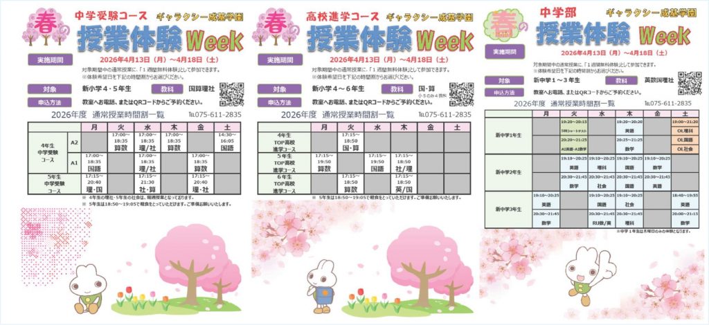 新しい学年、新しい自分に会いに行こう! ギャラクシー成基学園では、春のスタートを全力で応援する**「無料体験授業」**を実施します。