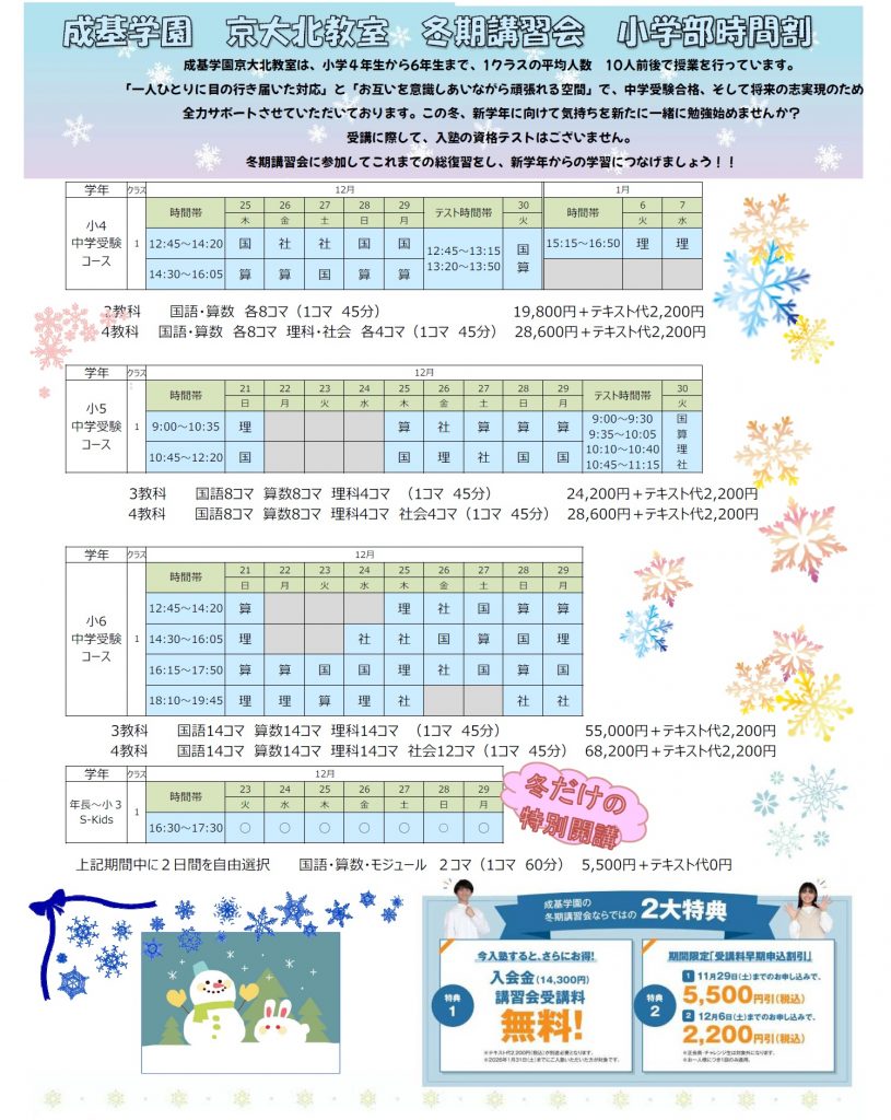 - 👍 受講しやすい日程と料金設定! 冬休みのご予定を邪魔しないよう、効率的で無理のないカリキュラムをご用意しています。