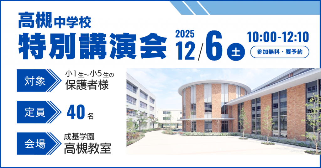 高槻中学校について、学校の取り組みや教育方針を詳しく知ることができる特別講演会を開催いたします。