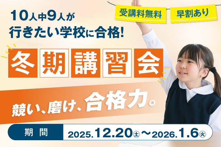冬期講習会の受講料が無料になります!(※新入会生のみ対象。テキスト代2,200円(税込)が別途必要です。)